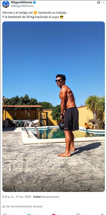 Entrenando al sol en casa con una Kettlebell hace dos días (este viernes 17 de octubre). 49 años cumplidos hace menos de un mes.