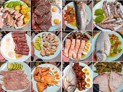 🍗 Proteína + pocos carbohidratos (carne y verduras).