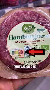 Mientras que alimentos reales como la carne de vacuno como la de este ejemplo, lo hagan con una letra D: