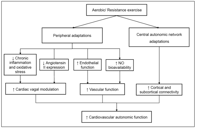 Mecanismos que vinculan el ejercicio con la adaptación cardiovascular autonómica en adultos mayores. Fuente: Springer Nature.