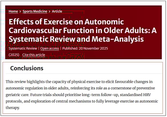 Revisión sistemática y meta-análisis sobre el impacto del ejercicio físico en la regulación autonómica cardiovascular (HRV) en adultos mayores.