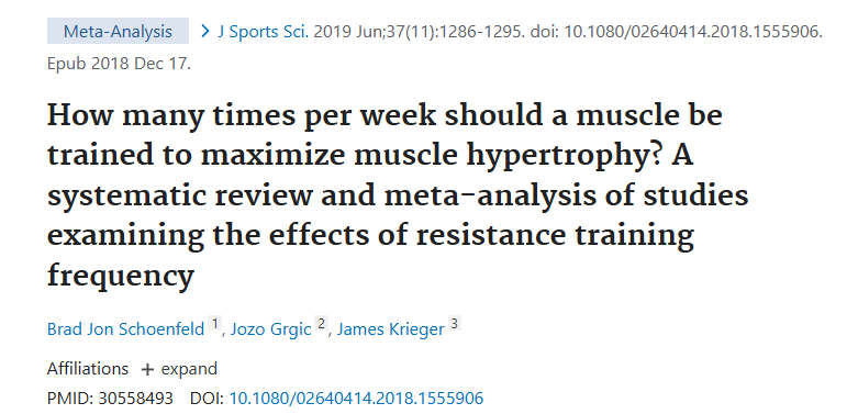How many times per week should a muscle be trained to maximize muscle hypertrophy? A systematic review and meta-analysis.