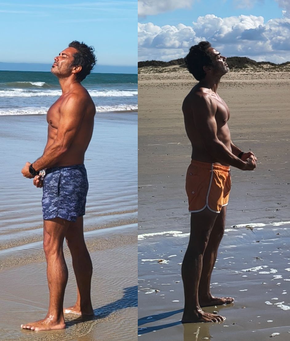 3. Ayer sábado 25 de octubre de 2025 (izq.) y hoy domingo 26 de octubre (dcha), de hace un rato después de la ruta de 6Km antes de darme un baño en el mar. Me siento más fuerte, ágil y con más energía que en todo el año. No sólo a nivel físico, también mental.